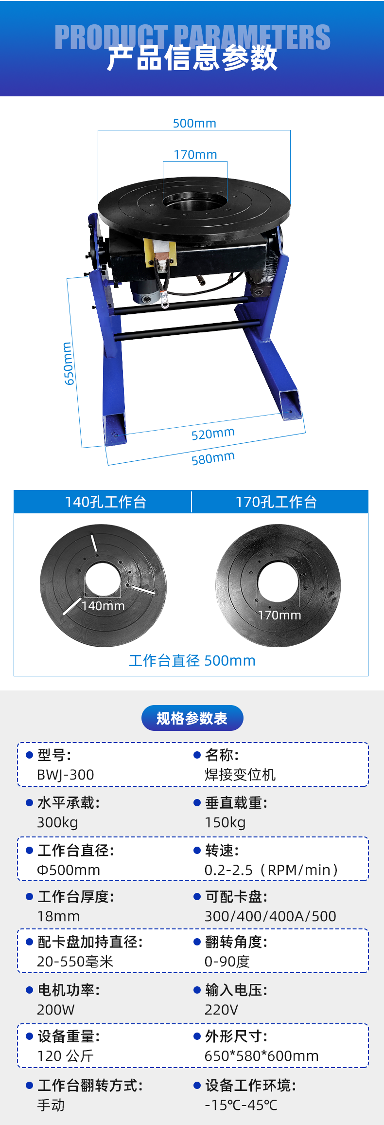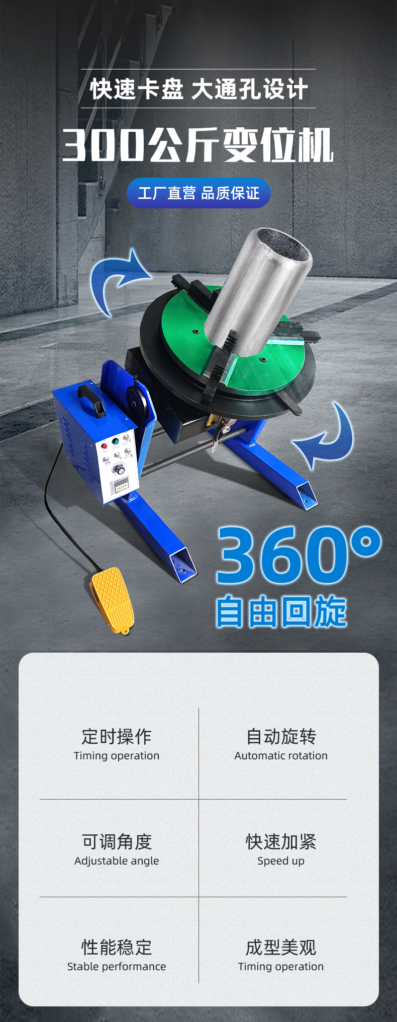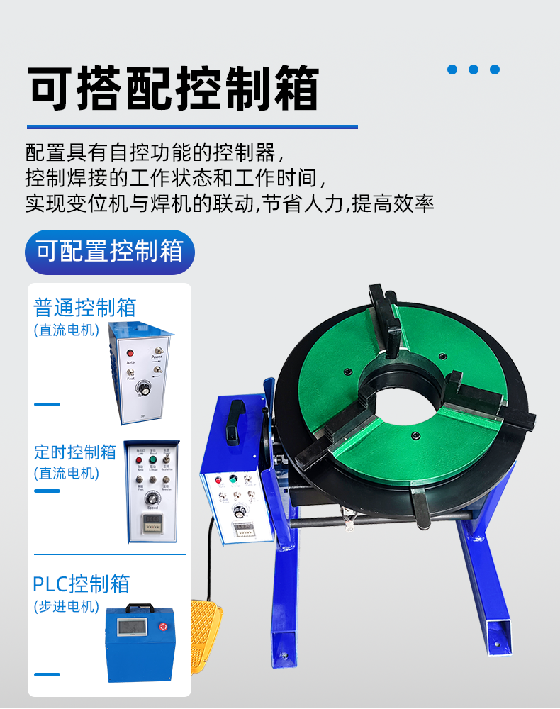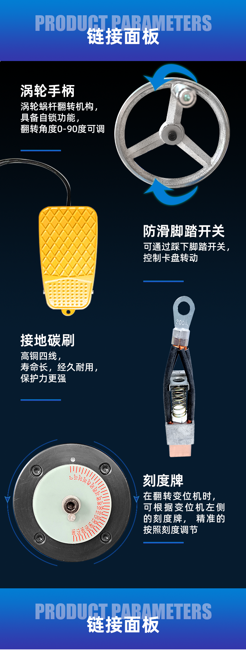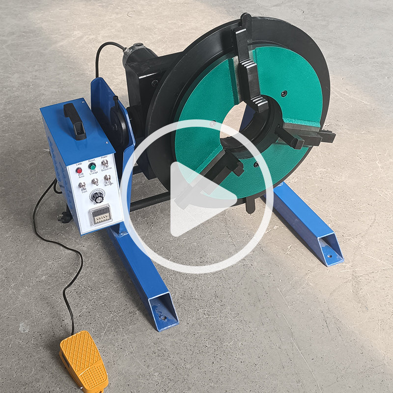 鑫浩焊接變位機可實現卡盤的快速加緊,通過手搖蝸桿可以使工作臺