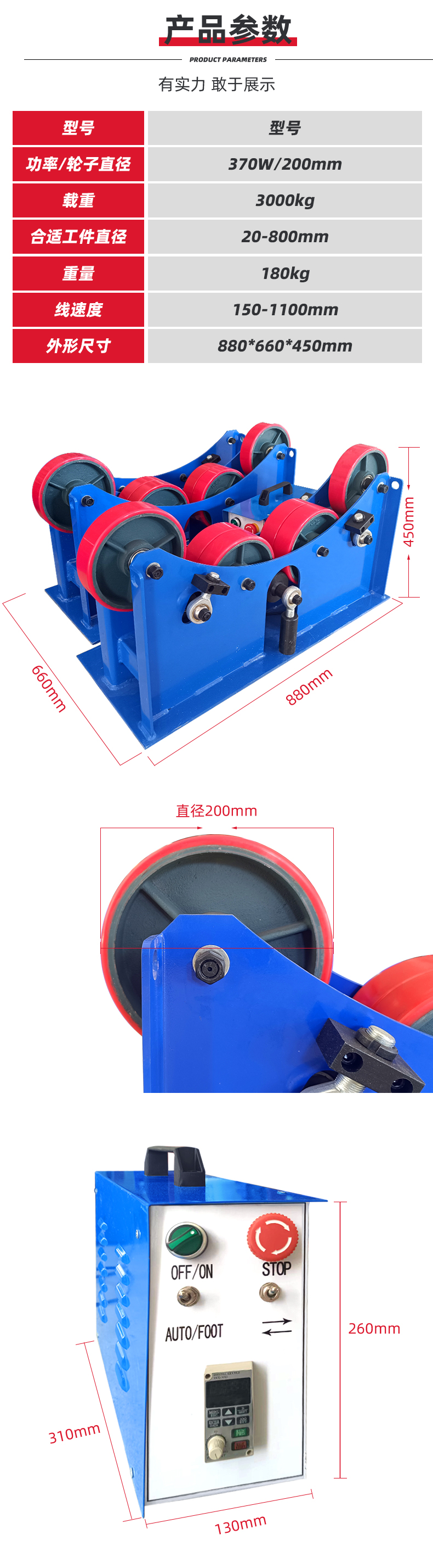 鑫浩3噸焊接滾輪架具有結構簡單、移動方便、通用性廣的特點,