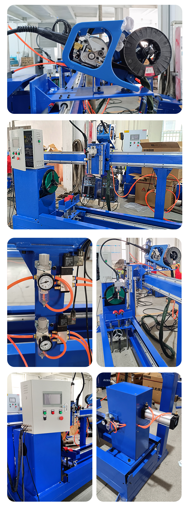 精度高,配置擺動(dòng)機(jī)構(gòu),二位活動(dòng)關(guān)節(jié),可調(diào)整焊槍的角度,適合環(huán)縫C02自動(dòng)焊接